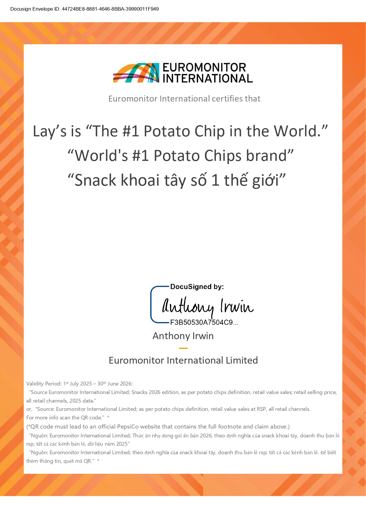 - Tuân Thủ Pháp Luật và Quy Tắc Đạo Đức Đối Với Nhà Cung Cấp Toàn Cầu của PepsiCo: Bên Bán cam kết tuân thủ vô điều kiện các điều khoản được nêu trong bản “Quy Tắc Đạo Đức Đối Với Nhà Cung Cấp Toàn Cầu” của PepsiCo được đính kèm dưới đây trong bất kỳ giao dịch nào với Bên Mua. Bên Mua được quyền ngay lập tức chấm dứt toàn bộ hoặc một phần Đơn Đặt Hàng nếu Bên Bán vi phạm quy định tại Điều 17 (Yêu Cầu Bảo Mật Thông Tin), Điều 19 (Chống Tham Nhũng) và Điều 20 (Tuân Thủ Pháp Luật Và Quy Tắc Ứng Xử Toàn Cầu Của Tập Đoàn PepsiCo).